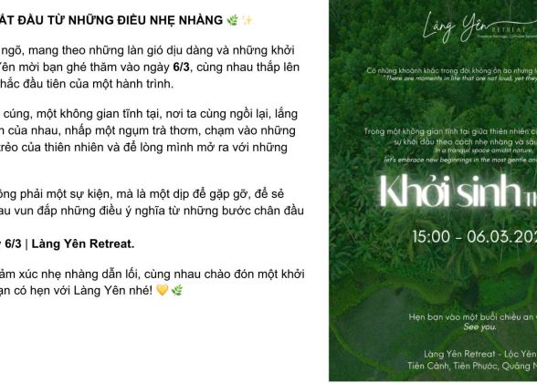 “ Chúng tôi mong muốn mang đến một không gian an yên, nơi mỗi trải nghiệm đều là sự chữa lành sâu sắc. 💚 ”